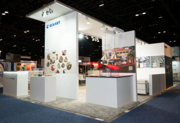 Natürlich sind in den USA auch größere Stände möglich. Auf der weltweit größten Kunststoffmesse kam es unserem Kunden ECKART GmbH darauf an, sich mit seinen Pigmenten auf dem amerikanischen Markt ins Gespräch zu bringen. Dafür haben wir einen Stand mit einer Vielzahl von Gesprächsmöglichkeiten realisiert: an der Theke, am Tisch oder in der luxuriösen Sitzgruppe. Und natürlich immer mit Blick auf die bunten und glänzenden Pigmente von ECKART.