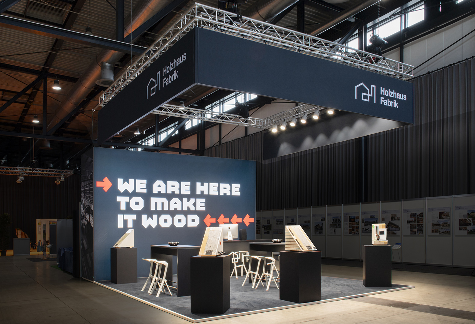 Die Botschaft: WE ARE HERE TO MAKE IT WOOD. Damit wirbt die Holzhaus Fabrik für ihre maßgeschneiderten Wohnobjekte.