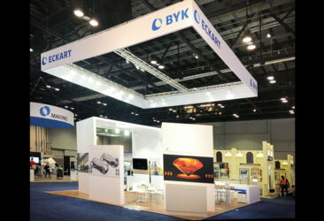 Already since 2014, Eckart has been active at trade fairs, mainly in the USA, but also in Europe. Every year we realize new, varied solutions for the leading manufacturer of metallic and pearlescent pigments for the coating, paint and cosmetic industry. The new stand design consists of a remarkable architecture with a lot of white area. In doing so, we created the place for an appropriate staging and effective visualization of the pigments and their areas of application. The overall effect was convincing for our customers and trade fair visitors at the NPE in Orlando.