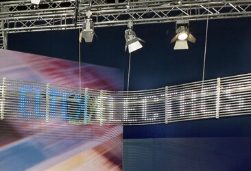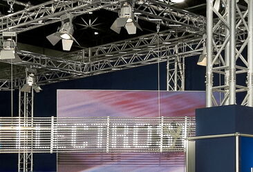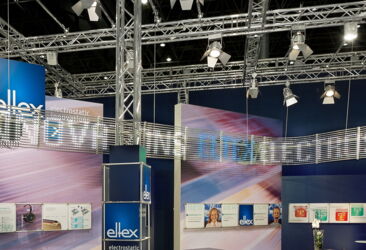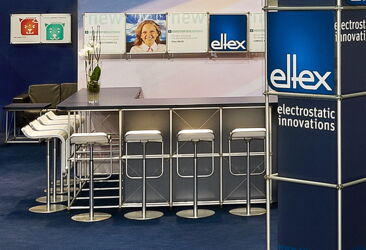 Eltex is an expert in dealing with electrostatics - to avoid unnecessary static electricity as well as for their productive use in many manufacturing processes. For us, this was the occasion to put electrically conductive materials in the design of the stand - in the truss, the lighting elements as well as the furniture. Additionally the curved LED display and the large graphics is an eye catcher of the stand.