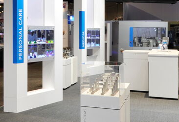 As a manufacturer of high-precision plastic parts, Otto Männer GmbH has special demands on the accuracy and the surface quality of the exhibition. This we have realized with a stand design including three bridge elements, glossy surfaces and integrated products. With light and color accents in the company’s colors, a friendly, light and open feeling was generated for the visitors.