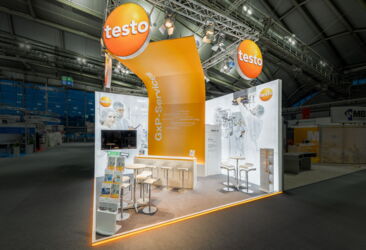 Even with a minimum of space you can present great things. Modular, adaptable stand design for Testo Industrial Services. Our designers have developed this customized construction with the spectacular architecture in terms of adaptability to a wide range of room situations. This series of stand is an eye-catcher out of the mass of standard constructions and attracts the attention of visitors.