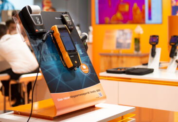 Tradeshows aren’t for talks only – for a lot of customers it is the easiest way to touch products and get a feeling for the quality and handling of it. This consideration led us through the booth conception which we developed in a tight partnership with Testo. For the measurement technique specialist we planned a lot of presentation tables and for the booth corners larger than life models out of HR foam, where you could test the functions extensively per touchscreen. A special attraction was the “Anwenderwand”. Here the visitors could search for and find hidden heating and cooling loops with the help of Testos thermal cameras.